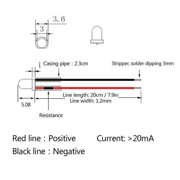 20cm Kablolu 12-18V 3mm Sarı LED Gösterge Işığı Özellikleri