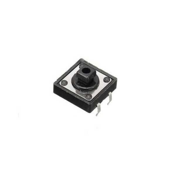 12x12x7.3mm 4 Pinli Siyah Push Buton - Tact Switch elektronik devrelerde sıkça kullanılan bir bileşendir. Kompakt 12x12x7 mm boyutları ve 3mm kalınlığıyla, dar alanlarda bile kolayca monte edilebilir. Ürün, pinli yapısı sayesinde elektronik devrelere hızlı ve güvenli bir bağlantı sunar. Dayanıklı siyah plastikten üretilmiş olan bu push buton, özellikle kullanıcı etkileşimi gerektiren cihazlarda güvenilir bir çözüm sağlar. Tact switch teknolojisi sayesinde, tuş basıldığında net ve hissedilebilir bir geri bildirim sunar.