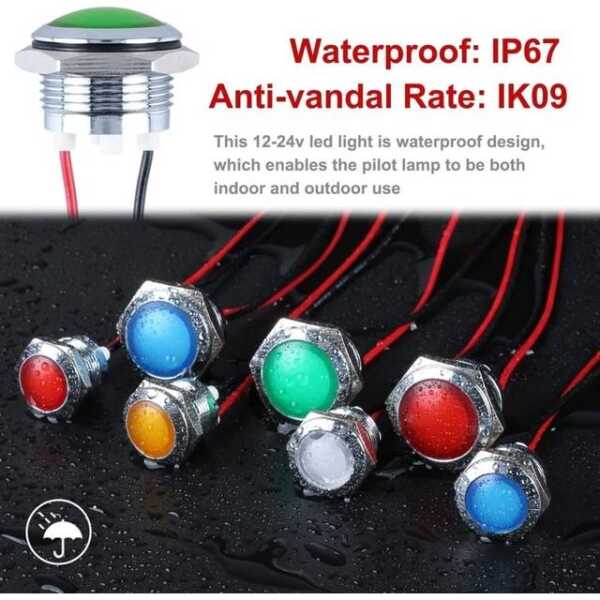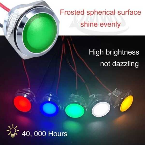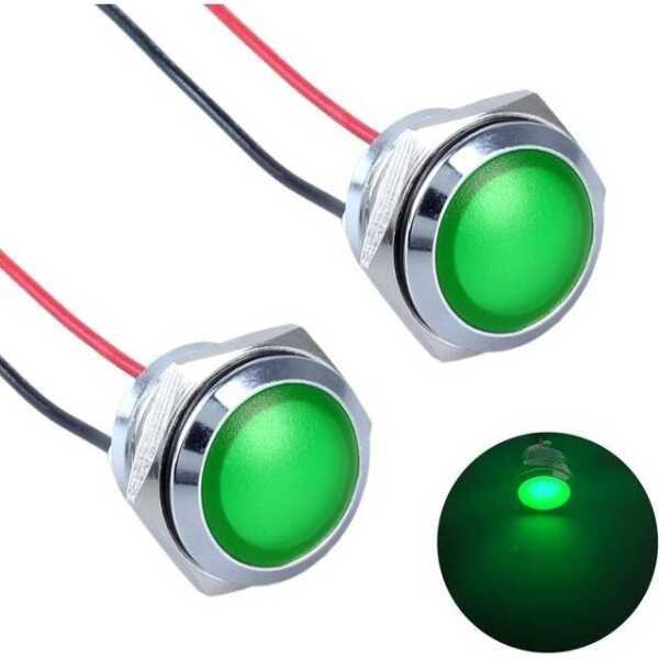Yeşil 10-24V 14mm LED Metal Gösterge Işığı 15cm Kablolu Uygulamaları