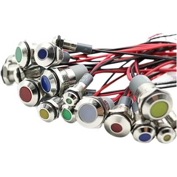 Kırmızı 3-9V 14mm LED Metal Gösterge Işığı, 15cm Kablolu Uygulamaları