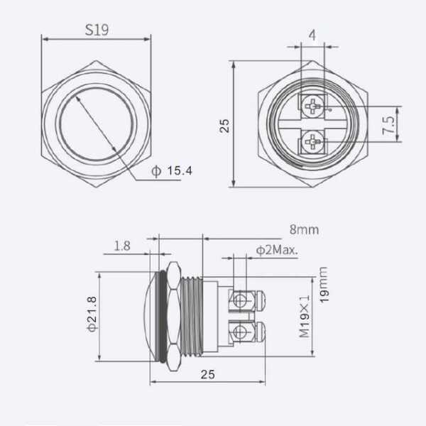 19G-Q0 19mm Bombeli Yaylı Metal Buton Teknik Özellikleri