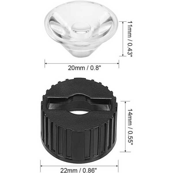 20mm LED Lamba Boncuk Lensi 45 Derece Siyah Düz Ağızlı Abajur 45 derecelik bir ışın açısı sağlayarak geniş ve eşit bir ışık dağılımı sağlar. Bu lens 1W, 3W ve 5W RGB LED'lere uygundur ve çeşitli aydınlatma ihtiyaçları için çok yönlü olmasını sağlar.