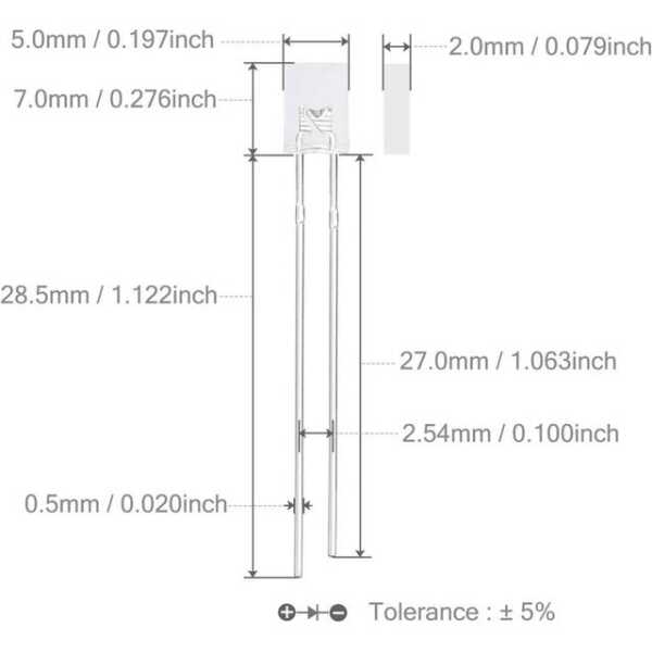 - Boyut: 18 mm bacak uzunluğuna sahip 257 dikdörtgen LED
