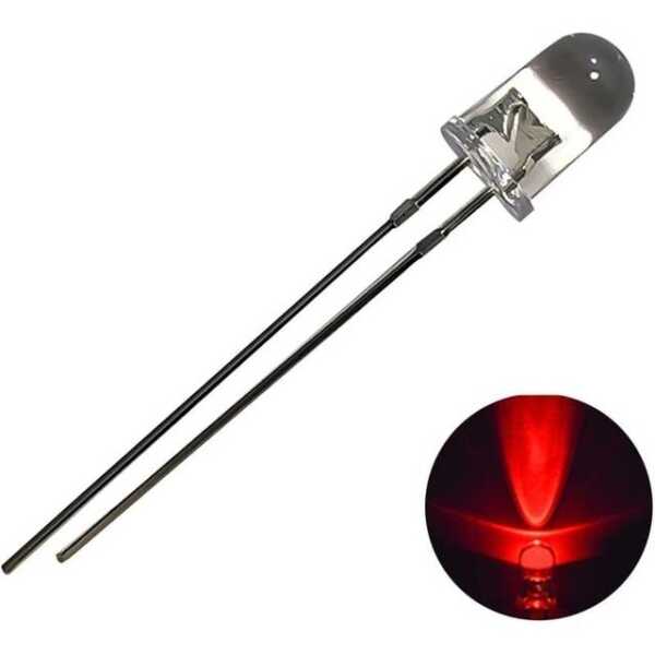 - Boyut: 18 mm bacak uzunluğuna sahip 5 mm düz LED
