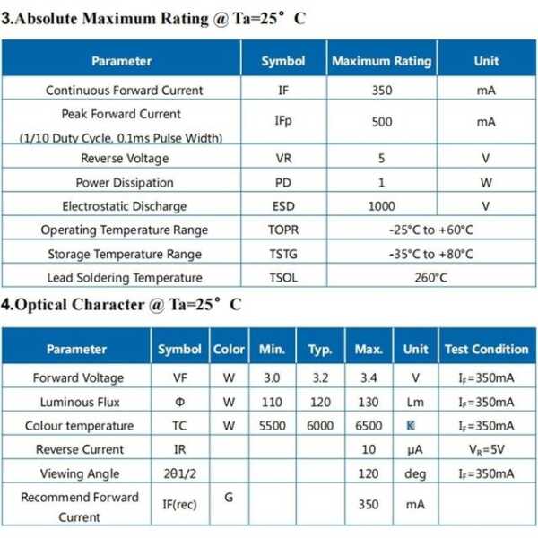 - Işın Açısı: 120° geniş açılı ışık yayılımı