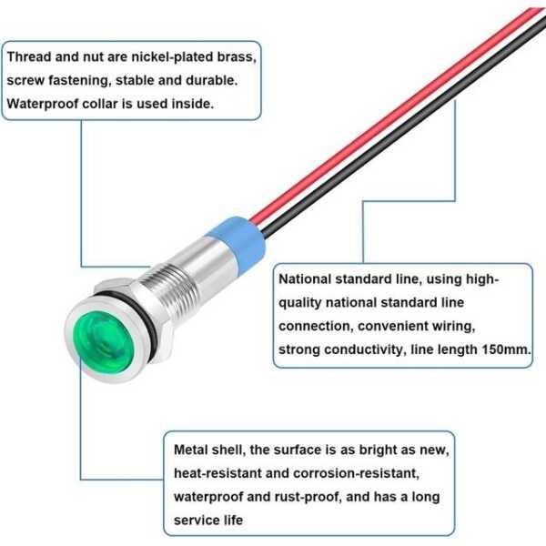 Yeşil 24V AD22C-6 LED Metal Gösterge Işığı Özellikleri