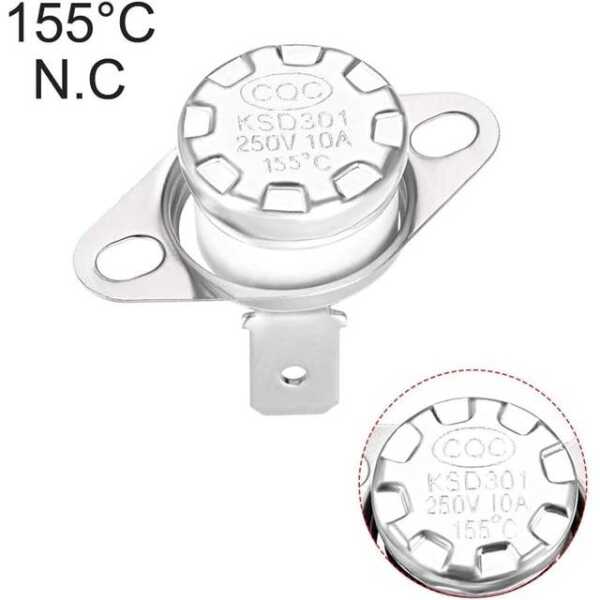 Bakalit KSD301 Sıcaklık Kontrollü Anahtar Termostatı, 155 santigrat derecede etkinleştirilerek güvenilir sıcaklık yönetimi için tasarlanmıştır. Bu normalde açık (NC) termostat 250V gerilimde ve 10A akımda çalışır.