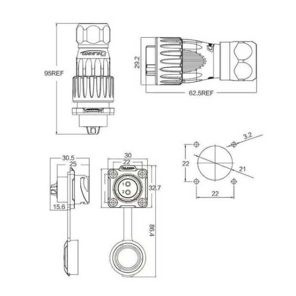 DH-20-J02PE-03-001 2-Pin Su Geçirmez Konnektör - Dişi Teknik Özellikleri