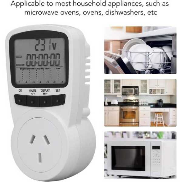 AU fişli Dijital LCD Güç Ölçer Soketi güç tüketimini ölçer 240V'ta 400W'a kadar. Sürekli çalışma için dahili bir pil ve gerçek zamanlı olarak doğru güç okumaları sağlayan bir LCD ekran ile birlikte gelir. Bu cihaz, evlerde ve ofislerde enerji kullanımını izlemek için idealdir.