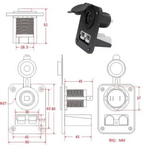 Dişi Araç Çakmak Panel - Anderson Power Soketli Teknik Özellikleri