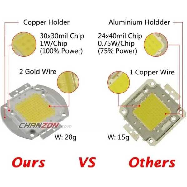 100W SMD High Power LED Bulb Full Spectrum White Technical Specifications