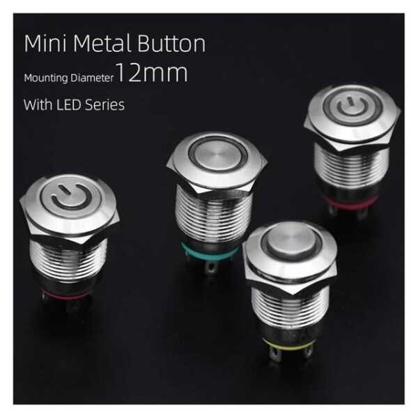 The 12mm 110-220V Waterproof Self-Locking Metal Push Button Switch features a sturdy design and a bright yellow LED light. This self-locking switch is perfect for applications requiring reliable control in wet environments.