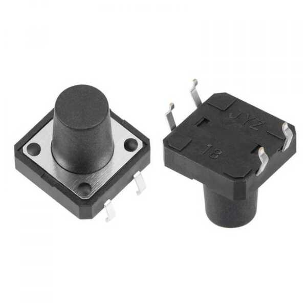 The 12x12x12mm Tactile Push Button Switch is a slightly larger tactile switch compared to the 7.5mm variant, providing a more substantial click action and better usability for applications that require a stronger tactile response. With its round design and 12x12mm dimensions, it is suitable for a wide range of electronics, control systems, and appliances where user interaction is critical. The tactile feel offers precise feedback, ensuring that the user knows when the button has been successfully pressed.