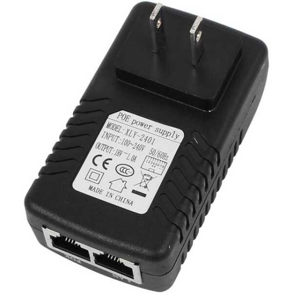 18V 1A 100M PoE Injector EU Plug - Silver Network Port Applications