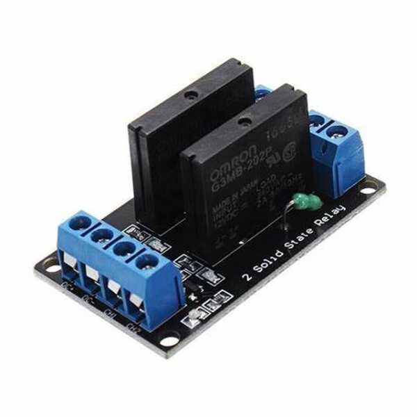 The 2 Channel 3-24V Relay Module features solid-state relay (SSR) technology, providing silent and reliable control for 3-24V DC devices. The high-level triggering allows for easy integration into various DC control systems. The module is designed with overcurrent protection using a resistive fuse to prevent damage to connected devices. It is ideal for use in home automation, security systems, and other applications requiring safe and efficient switching.