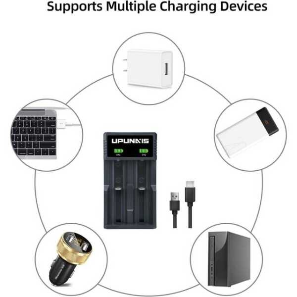 - Compatibility: Li-ion 18650, 14500, 16340 batteries