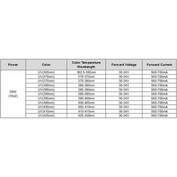 20W SMD High Power LED Bulb 380-385nm Purple Technical Specifications