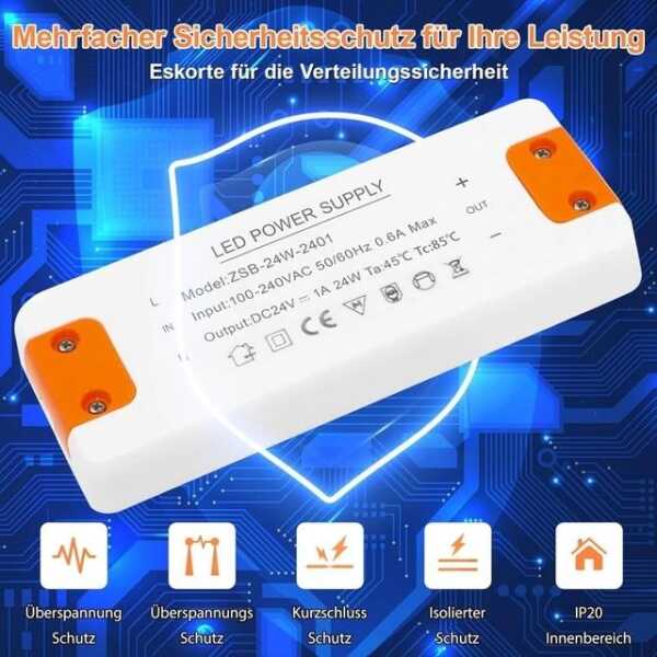 The 24W 1A 24V Led Dedicated Drive Power Supply is specifically designed for powering LED lights and other low-power applications. It delivers a stable 24V output with a current capacity of 1A, making it ideal for LED strips and small LED setups.
