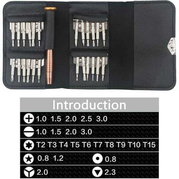 - 25 Different Bits: Includes a wide variety of screwdrivers for different applications