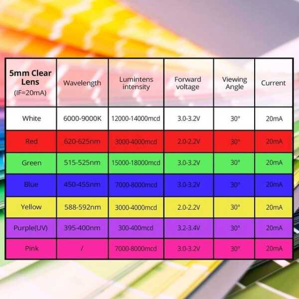• Size: 5mm flat LED with 28mm leg length