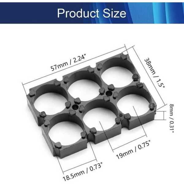 The 2x3 18650 Battery Holder is designed to hold two sets of three 18650 batteries. With an 18.5mm bore diameter, it provides secure and organized battery storage for high-power applications.
