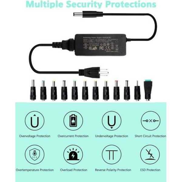 The 3-12V 5A 60W AC/DC Adjustable Power Adapter features a wide range of voltage settings and a high current output. It includes CE certification and an EU plug, ensuring safe and reliable operation for various electronic devices.