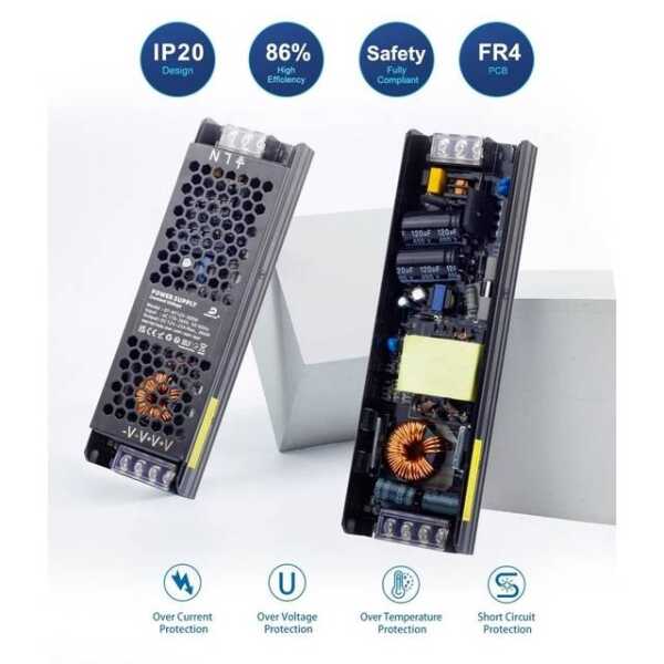 The 300W 12V 25A Ultra Thin Led Dedicated Power Supply with a fan provides 300W of power output at 12V, designed for high-power LED systems. The built-in fan ensures efficient cooling, making it suitable for continuous use in demanding environments.