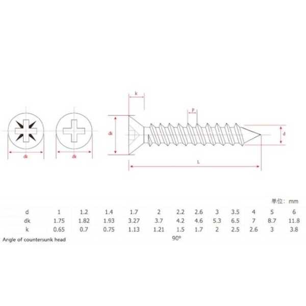 - Head Type: Cross recessed countersunk for easy installation
