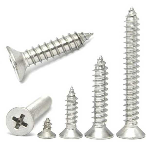 The 304 Stainless Steel Cross Recessed Countersunk Head Tapping Screw M1-4x4 provides a reliable fastening solution with its robust design. The countersunk head allows for a smooth surface finish.