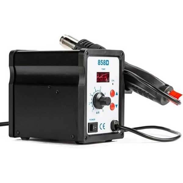 The 858D Hot Air Soldering Station with Display is a high-performance tool designed for precision soldering and desoldering tasks in electronics repair and assembly. With a digital display for temperature and airflow control, it offers accurate and adjustable settings for heat application. This soldering station is ideal for surface-mount technology (SMT) components, PCB rework, and shrink tubing applications, making it a must-have for professionals and DIY enthusiasts alike.