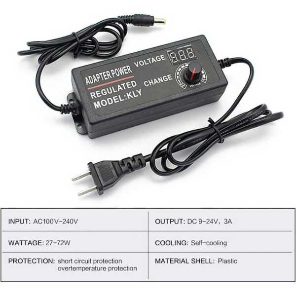 9-24V 3A 72W AC/DC Adjustable Power Adapter-Silk Printing With CE-EU Plug 9-24V 3A 72W AC/DC Adjustable Power Adapter Applications