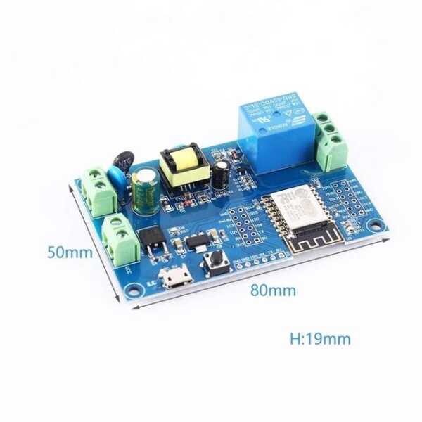 The AC90-250V ESP8266 Wireless WIFI Relay Module is designed to control high-voltage AC devices, using a 1-channel relay and the ESP-12F WiFi development board for remote operation. This module supports a wide range of input voltages, from AC90V to AC250V, as well as various DC power supplies. It is perfect for home automation, allowing users to control devices like lights, fans, and security systems remotely via a smartphone or tablet.
