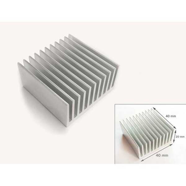 The Aluminum Heatsink Without Thermal Tape measures 40x40x20mm and is designed to provide effective heat dissipation. This heatsink does not come with thermal tape, making it suitable for applications where separate thermal adhesive is applied or not needed.