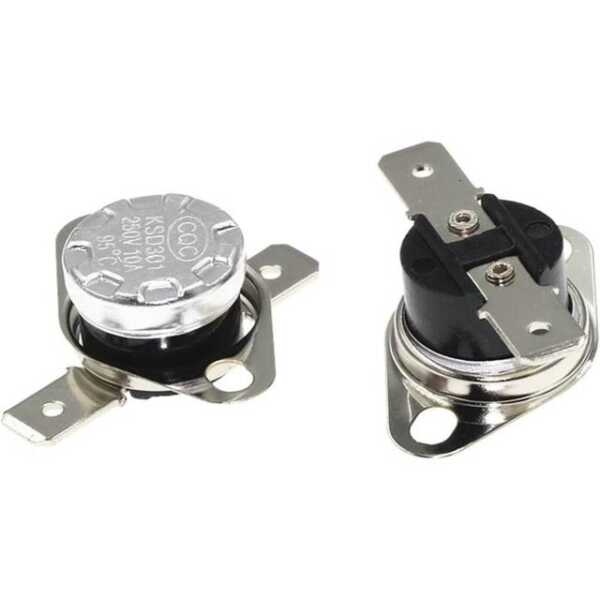 The Bakelite KSD301 Temperature Controlled Switch Thermostat is designed for precise temperature management, activating at 135 degrees Celsius. This normally open (NC) thermostat operates at a voltage of 250V and a current of 10A.