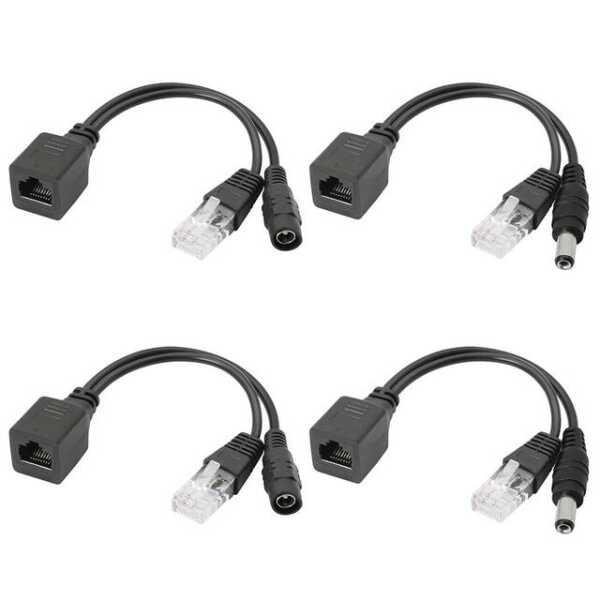 Black 12V PoE Splitter Adapter Cable DC Male Plug Applications