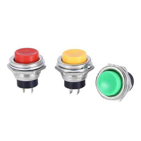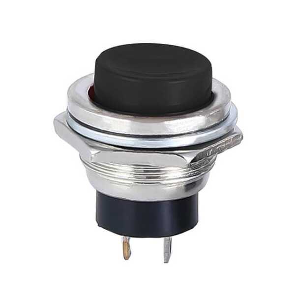The Black DS-212 16mm 2 PIN Momentary Self-Reset Off-On Round Button Switch offers reliable momentary off-on control. The self-reset feature ensures the button returns to its original state after being pressed, making it suitable for applications requiring momentary on-off functionality.