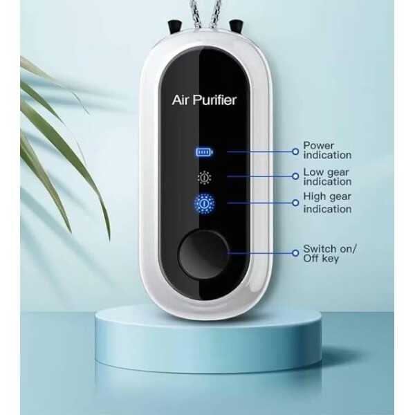 The Black Hanging Neck Air Purifier Mini Rechargeable Air Purifier Necklace is a portable air purification solution designed for personal use. This stylish and lightweight device can be worn around the neck and efficiently purifies the air around you. Perfect for people on the go, this mini air purifier uses advanced filtration technology to help reduce pollutants, allergens, and harmful particles, improving your air quality wherever you are.