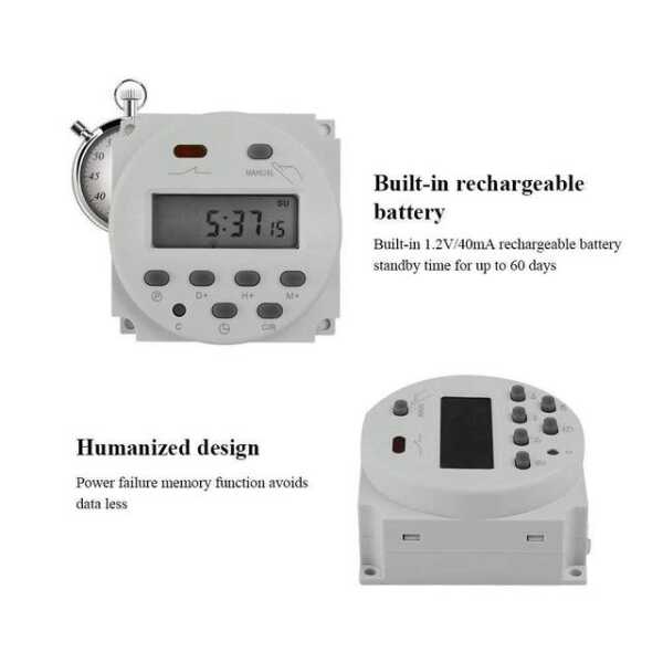 The CN101A 220V LCD Digital Timer is a versatile programmable switch for 220V electrical systems. Equipped with a built-in battery, it ensures accurate time schedules even during power interruptions.