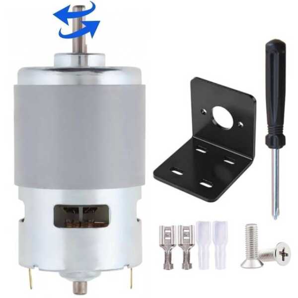 The D Shaft 775 24V 10000RPM High Speed High Torque DC Motor offers exceptional speed and torque at 10000RPM with a 24V power supply. This dual-shaft motor is designed for high-performance applications that require both speed and power.
