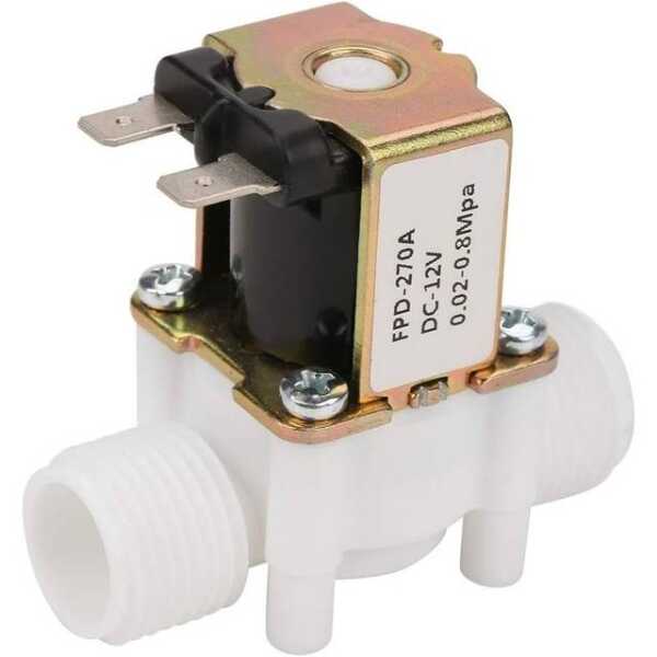 The DC12V N/O G1/2 Plastic Electric Solenoid Valve is designed for controlling water and air flow in automated systems. Operating on 12V DC, this normally open (N/O) valve closes when powered. The G1/2 male thread is compatible with standard systems, handling pressures between 0.02 and 0.8Mpa.