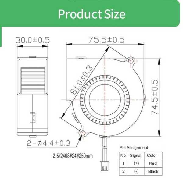 DC24V 7530 Double Ball Centrifugal Fan With XH2-54-2P 30cm Cable 4100RPM Size:75x75x30mm DC5V 8010 Oil Containing Cooling Fan Applications