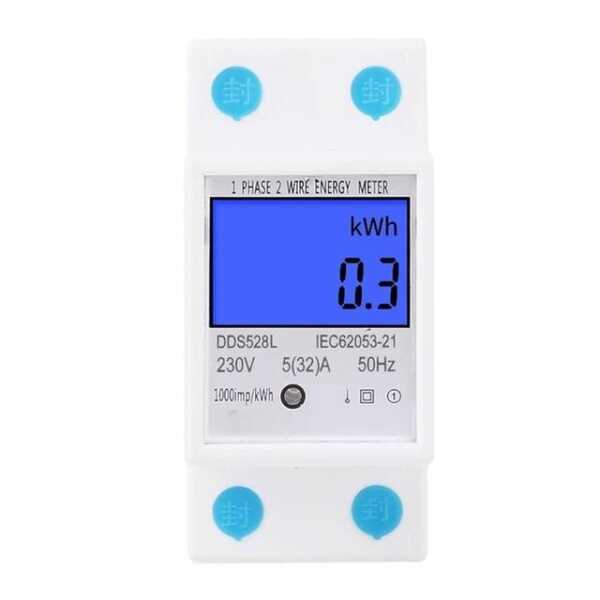 DDS528L 5-32A 230V 50Hz Digital LCD Single Phase Energy Meter Watt Meter DIN Rail Mounting Without Battery