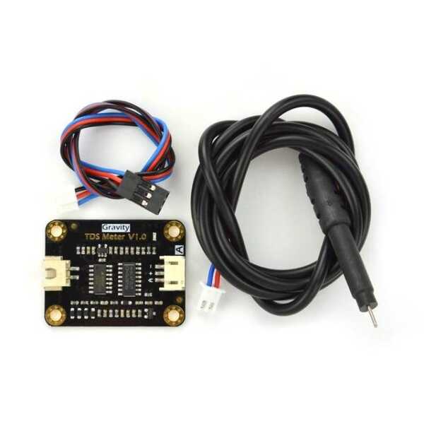 The DFRobot Gravity Analog TDS Sensor Module SEN0244 is a high-quality, easy-to-use sensor designed to measure Total Dissolved Solids (TDS) in water. It provides a simple and effective way to assess water quality by detecting the amount of dissolved ions, making it ideal for applications such as aquaculture, hydroponics, and environmental monitoring. This sensor module can be connected to any microcontroller with analog input capabilities, such as Arduino, allowing for real-time TDS data monitoring. With its plug-and-play Gravity interface and waterproof probe, the SEN0244 is perfect for both beginners and professionals working on water quality projects.