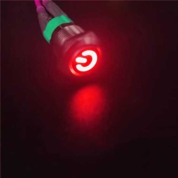 The Flat Head 12mm 12-24V Waterproof Self-Locking Metal Push Button Switch features a robust design and a bright red LED light. This self-locking switch is perfect for applications requiring reliable control in wet environments.