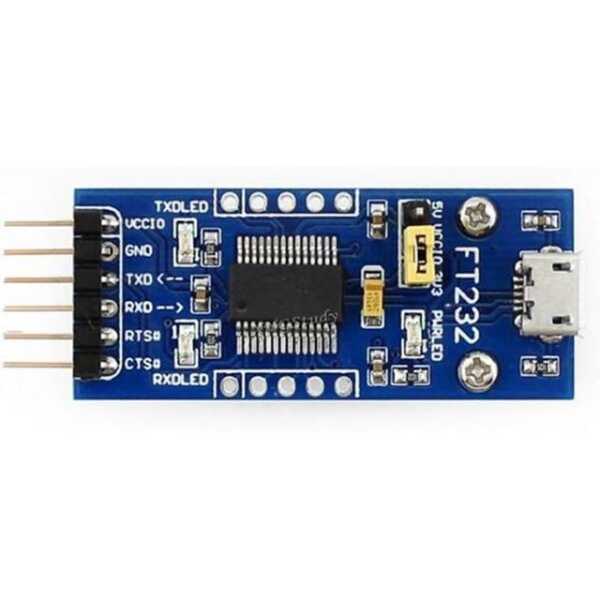 The FT232 FT232RL USB to TTL Serial Port Module is a highly versatile and reliable USB-to-serial converter that enables communication between USB-enabled devices and UART (TTL) serial interfaces. It uses the FT232RL chip, which is well-known for its stability and high data transfer rates. This module is designed for easy integration into a wide variety of embedded systems, microcontroller projects, and communication applications, providing a simple method for connecting devices like Arduino and other development boards to a PC via a micro USB connection.