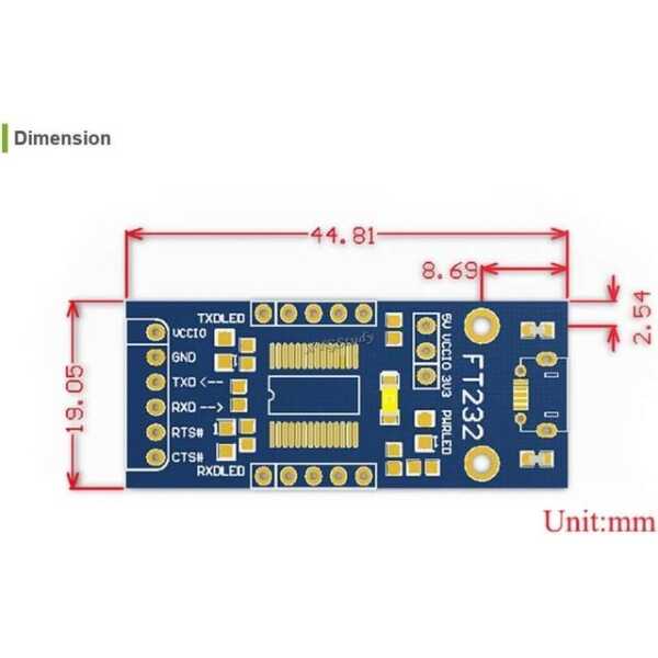 - FT232RL Chip: Uses the reliable FT232RL USB-to-UART chip for stable data transfer and compatibility with many devices.