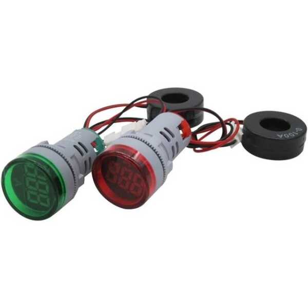 Green 0-100A 22mm AD16-22DSA Round LED Ammeter Indicator Light With Transformer Applications