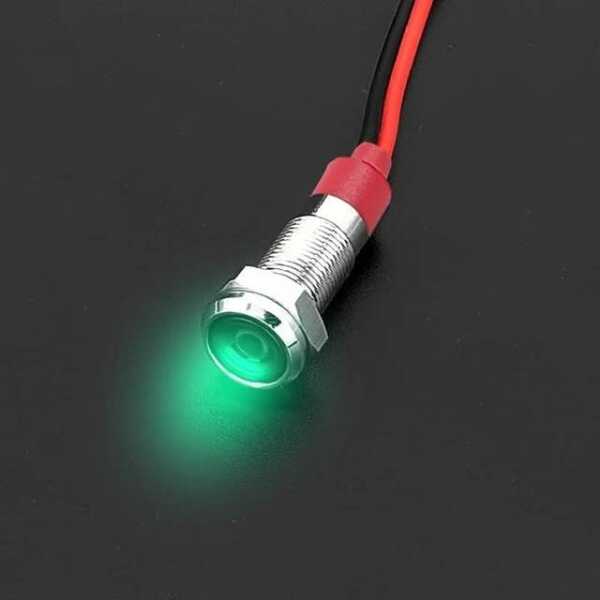 Green 10-24V 10mm LED Metal Indicator Light With 15cm Cable Applications