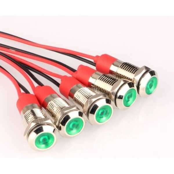 Green 3-9V 8mm LED Metal Indicator Light With 15cm Cable Applications