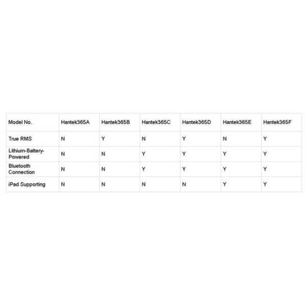 The Hantek365E is a wireless USB virtual multimeter that supports Bluetooth connectivity and can connect to an iPad. This model includes a battery for immediate use, offering flexibility and convenience.